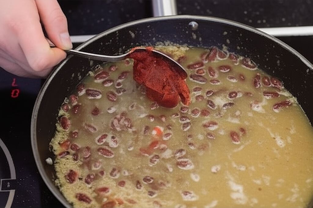 Podaj fasolkę z kleksem gęstej, kwaśnej śmietany, która złagodzi pikantność dania. Możesz też dodać pokrojonego awokado, świeżą salsę pomidorową lub starty ser. Dla miłośników mięsa – dodaj podsmażone kawałki kurczaka lub mielonej wołowiny na początku przygotowania.