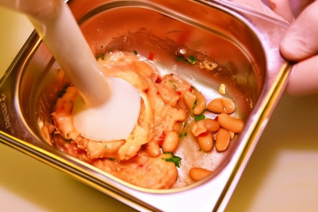 Namocz fasolę w zimnej wodzie przez noc. Potem odcedź i zalej świeżą wodą. Wsyp kostki Bulionu na włoszczyźnie Knorr i gotuj, aż fasola zmięknie. Odcedź fasolę ponownie i pozostaw do wystygnięcia. Pokrój papryczkę chilli w drobną kostkę, posiekaj czosnek i natkę pietruszki na małe kawałki. Połącz fasolę z papryczką, czosnkiem oraz natką, a następnie zmiel całość w maszynce do mielenia mięsa (lub zmiksuj blenderem).
