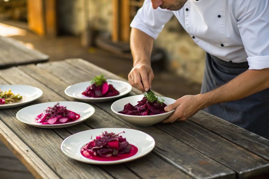 Buraki z zakwasu doskonale komponują się z serem kozim, orzechami, jabłkami i zielonymi warzywami, tworząc harmonijne połączenia smakowe. Ich intensywny kolor sprawia, że dania zyskują nie tylko na smaku, ale i na atrakcyjności wizualnej.