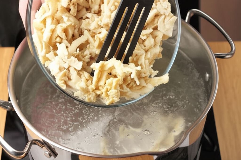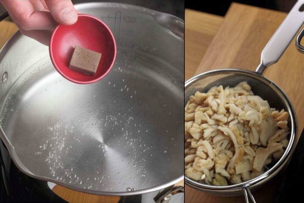 Flaki umieść w garnku z wrzącą wodą i gotuj 5 min, po czym odcedź. Tę czynność powtarzaj aż do momentu, gdy pozbędziesz się charakterystycznego zapachu flaków.