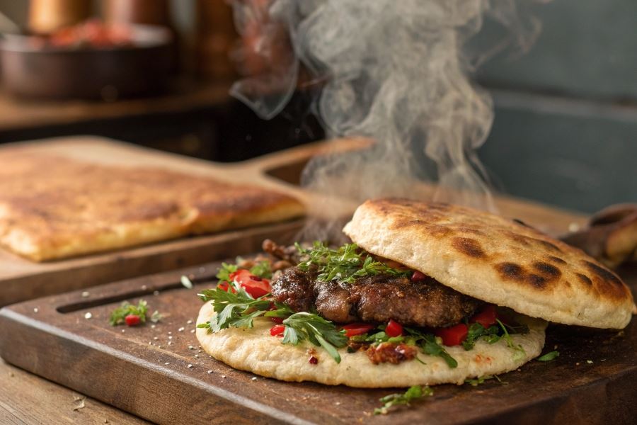 Burger na płaskim cieście to wyjątkowe danie łączące koncepcję burgera z tradycją wypieków środkowoazjatyckich. W przeciwieństwie do klasycznych burgerów, które serwowane są w bułce drożdżowej, ta odmiana wykorzystuje płaskie, często lekko chrupiące ciasto jako bazę. Charakterystyczną cechą jest sposób przygotowania – mięso nie występuje w formie kotleta, lecz jako rozdrobnione, intensywnie przyprawione nadzienie rozprowadzone na powierzchni ciasta, które następnie jest składane lub zawijane.