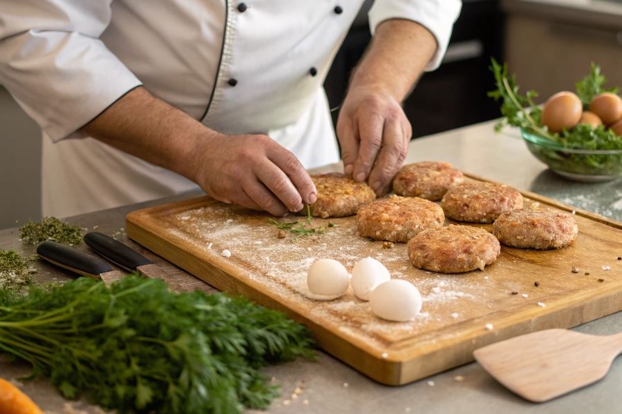 Profesjonalna wskazówka: Dodanie do masy mięsnej 1-2 łyżek zimnej wody lub mleka na każde 500g mięsa znacząco zwiększa puszystość gotowych kotletów.