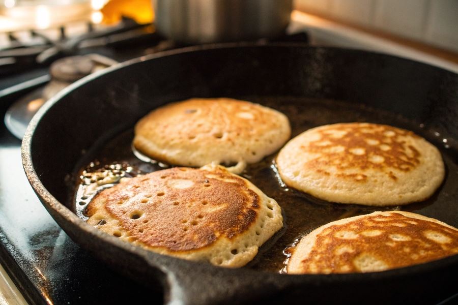 Kluczowym elementem jest również odpowiednia temperatura patelni – powinna być rozgrzana do średnio-wysokiej temperatury (około 180-200°C). Zbyt niska temperatura spowoduje, że ciasto będzie się „gotować” zamiast smażyć, a zbyt wysoka przypalenie zewnętrznej warstwy przed uformowaniem się dziurek.