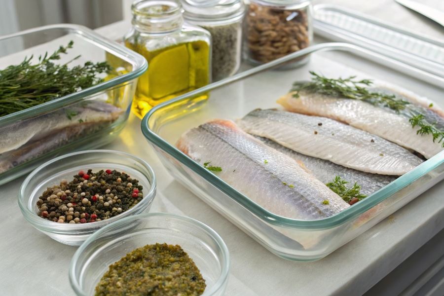 Pakowanie próżniowe to najskuteczniejsza metoda zabezpieczenia surowych śledzi przed wysuszeniem i utlenieniem. Specjalne woreczki do pakowania próżniowego chronią rybę przed kontaktem z powietrzem, zapobiegając powstawaniu nieprzyjemnego „rybiego” zapachu w zamrażarce. Jeśli nie posiadasz pakowarki próżniowej, owiń każdy filet folią spożywczą, a następnie umieść w szczelnym pojemniku lub woreczku strunowym, usuwając maksymalnie dużo powietrza.