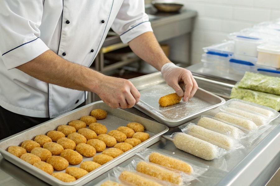 Technika flash freezing doskonale sprawdza się przy mrożeniu panierowanych krokietów:
