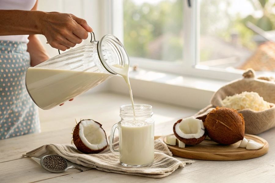 W porównaniu z napojem ze świeżego kokosa, wersja z wiórków zawiera nieco mniej tłuszczów (około 15-20% mniej) i niższą zawartość minerałów, ale nadal dostarcza cennych składników odżywczych. Prawidłowo przygotowany napój z wiórków zachowuje świeżość w lodówce do 3-4 dni w szczelnie zamkniętym szklanym pojemniku. Przed spożyciem wymaga zawsze dokładnego wymieszania, gdyż naturalne tłuszcze mają tendencję do oddzielania się na powierzchni.