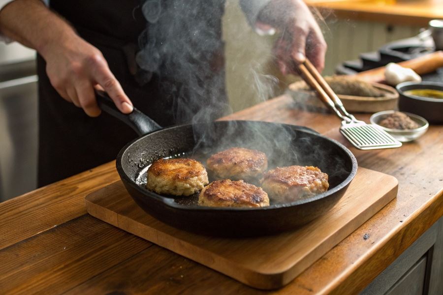 Odpowiedni wybór patelni ma kluczowe znaczenie dla uzyskania idealnie usmażonych kotletów. Patelnia teflonowa sprawdza się najlepiej przy smażeniu delikatnych kotletów drobiowych, gdyż minimalizuje ryzyko przywierania i umożliwia smażenie z mniejszą ilością tłuszczu. Patelnia żeliwna doskonale utrzymuje wysoką temperaturę, co czyni ją idealną do kotletów wieprzowych i wołowych, zapewniając apetyczną, chrupiącą skórkę. Z kolei patelnia stalowa sprawdza się przy intensywnym smażeniu w wysokiej temperaturze, szczególnie przy kotletach panierowanych.