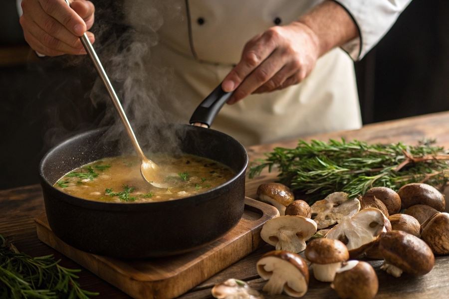 Techniki dodawania grzybów i wykończenie zupy
