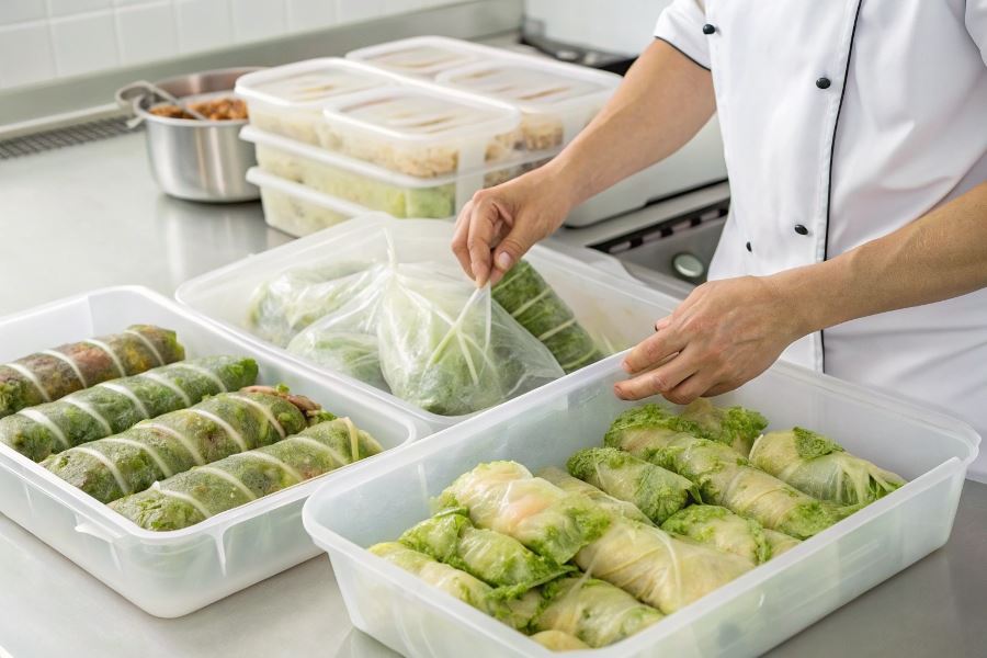 Mrożenie surowych gołąbków pozwala zachować świeżość składników i naturalny smak farszu. Dzięki temu po upieczeniu smakują niemal jak świeżo przygotowane.