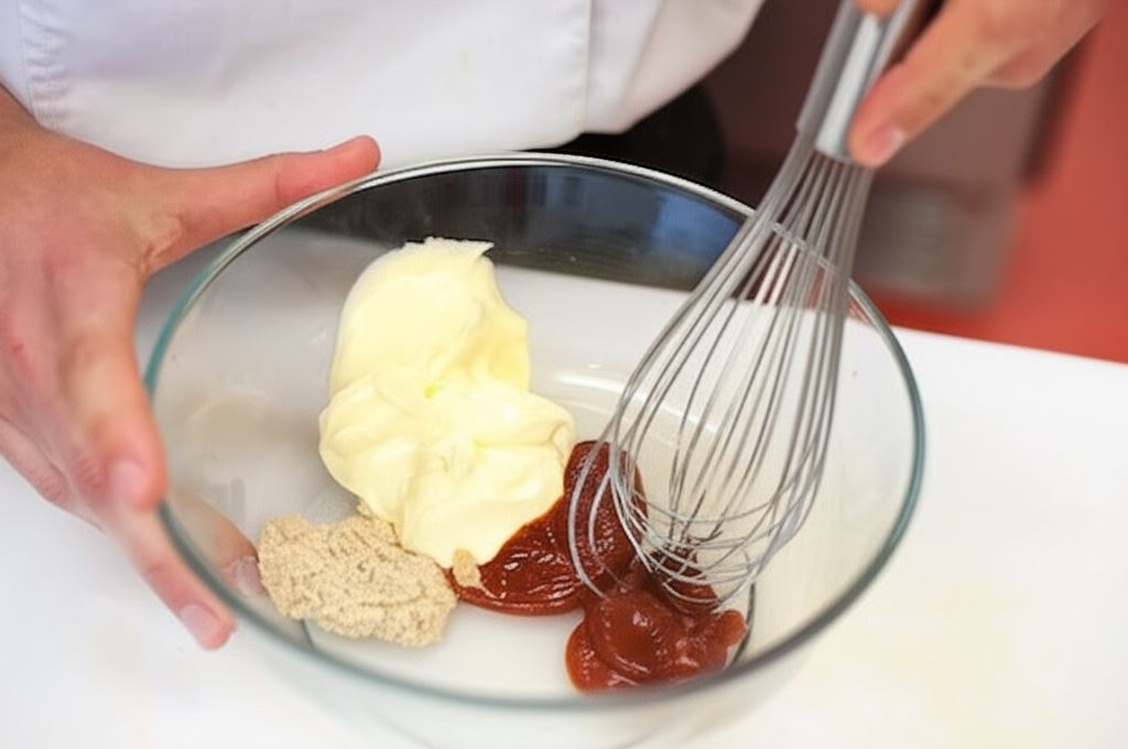 W misce wymieszaj Majonez Babuni Hellmann's z Ketchupem Hellmann's Łagodnym i chrzanem. Potem wsyp przyprawę Knorr, a całość starannie połącz na jednolity sos. Upieczone frytki przełóż na talerz lub do miski. Sos koktajlowy serwuj osobno w małych miseczkach.