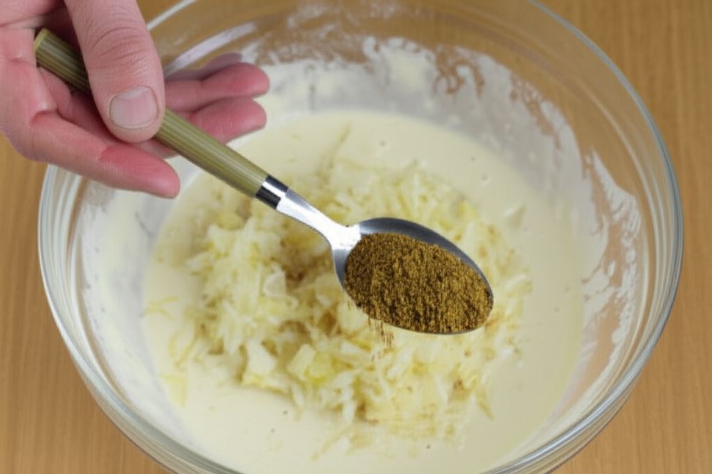 Wsyp kapustę, przypraw przyprawami i jeszcze raz wymieszaj.
