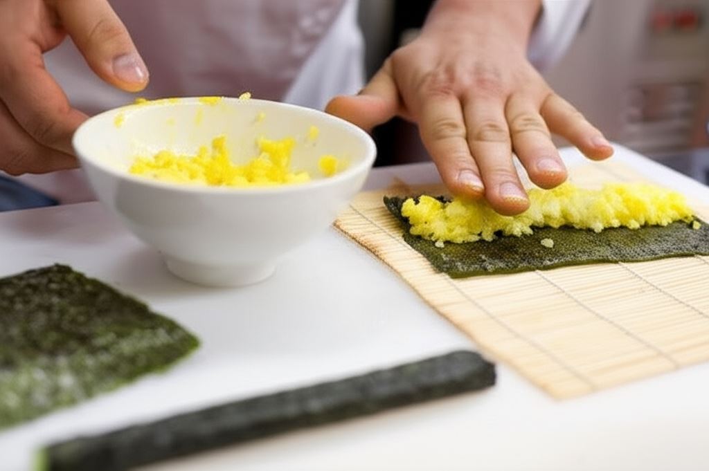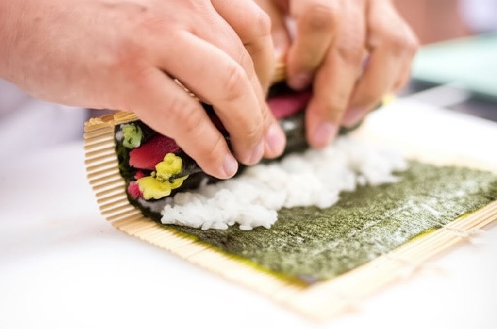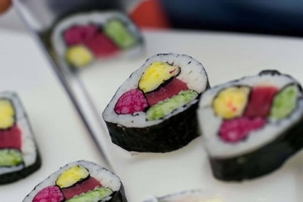 Futomaki to prawdziwa uczta dla oczu i podniebienia – grube rolki sushi wypełnione różnorodnymi składnikami, które zachwycą każdego miłośnika japońskiej kuchni. Przygotowanie tego przysmaku w domu jest prostsze niż myślisz! Wystarczy ugotowany ryż podzielić na trzy części i zabarwić je naturalnymi barwnikami: sokiem z marchwi, pietruszką i burakiem. Każdy kolorowy ryż formujemy w kształt łezki, owijamy w nori, a następnie układamy na większym arkuszu wodorostów wraz z kawałkiem świeżego tuńczyka. Po zwinięciu całości otrzymujemy kolorowy wałek, który kroimy na mniejsze kawałki o grubości około 2 cm.