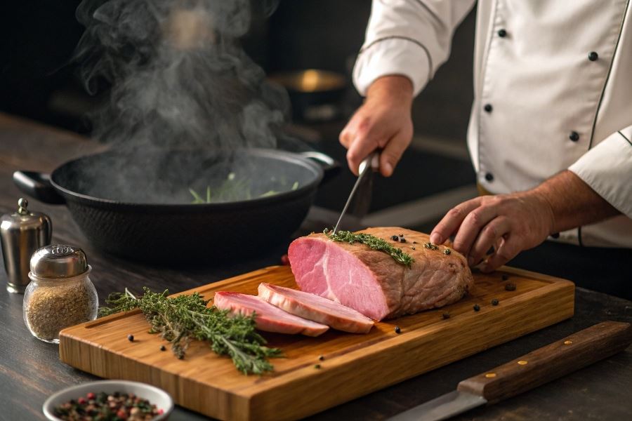Wskazówka eksperta: Wybieraj gammon z warstwą tłuszczu o grubości minimum 0,5 cm. Podczas obróbki termicznej tłuszcz topi się, nadając mięsu soczystość i głębię smaku, której nie uzyskasz w wersji całkowicie odtłuszczonej.
