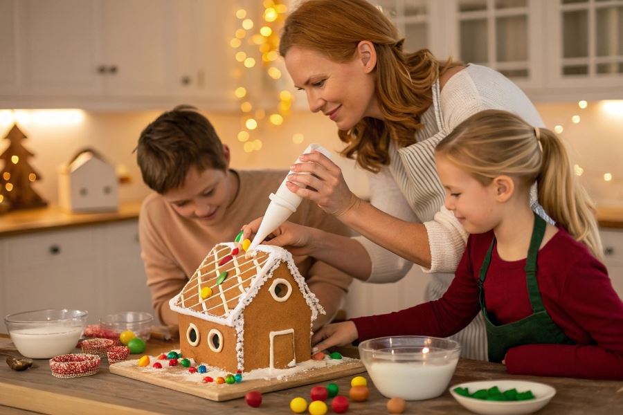 Piecz elementy w temperaturze 180°C przez 10-12 minut, aż nabiorą złotobrązowego koloru. Pamiętaj, aby nie przesuszyć ciasta – zbyt kruche elementy będą trudne do złączenia. Po upieczeniu pozostaw je na kratce do całkowitego ostygnięcia, najlepiej przez kilka godzin lub całą noc.