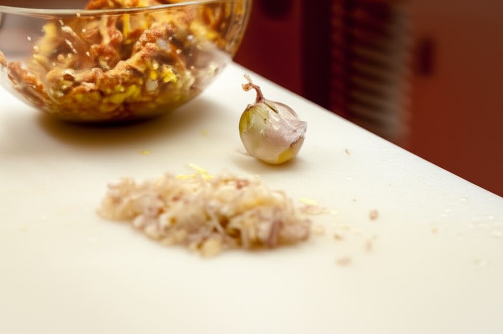 Cebulę szalotkę i ząbki czosnku obierz i posiekaj drobno.