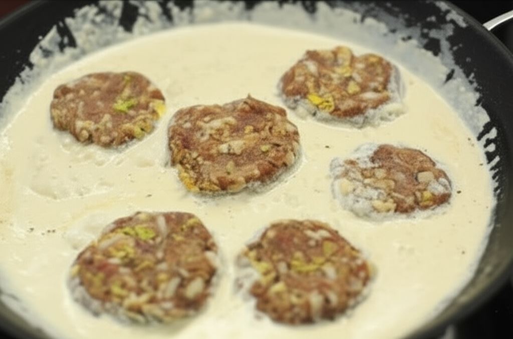 Formuj z mięsa kotlety i gotuj je w sosie na wolnym ogniu przez około 20 minut.