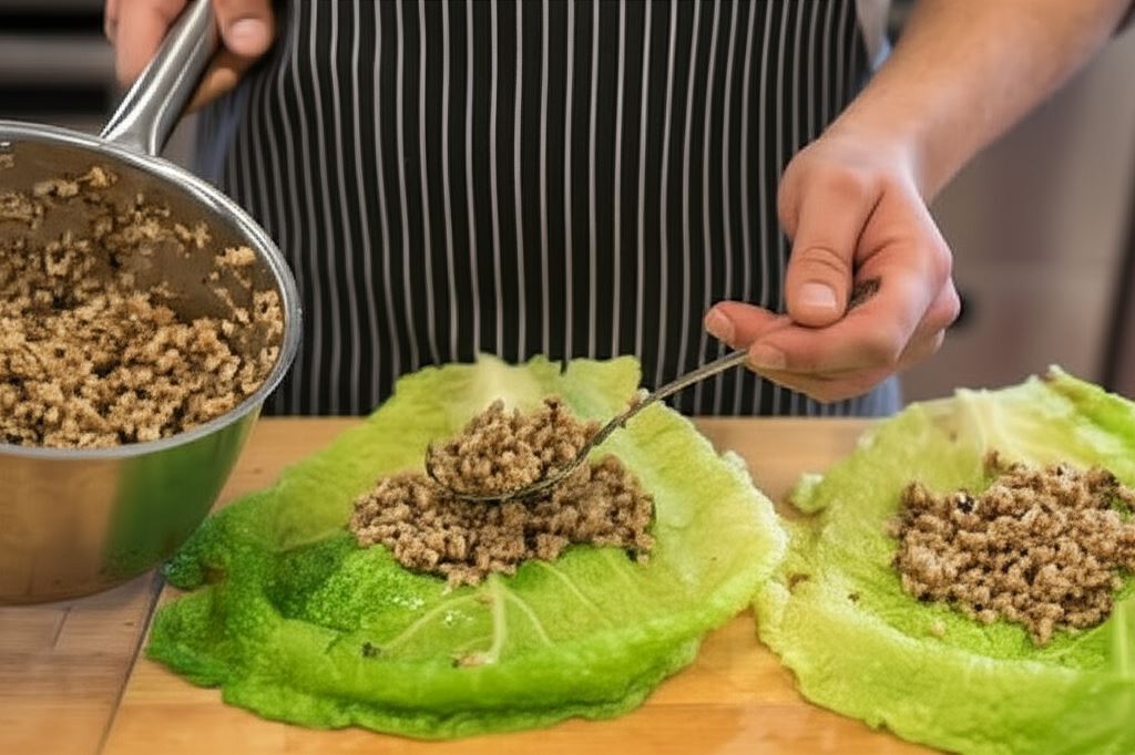 Nadzienie umieszczaj na liściach kapusty i zwijaj tak, by nie wypadło.
