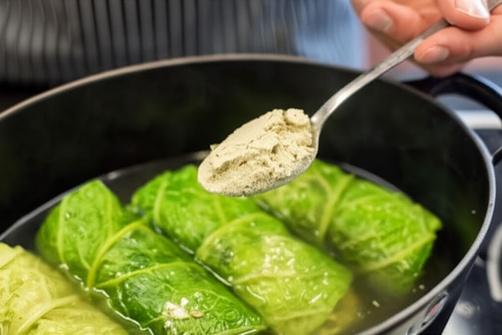 Kiedy kapusta i kasza zmiękną, wsyp Knorr pieczarkowy.