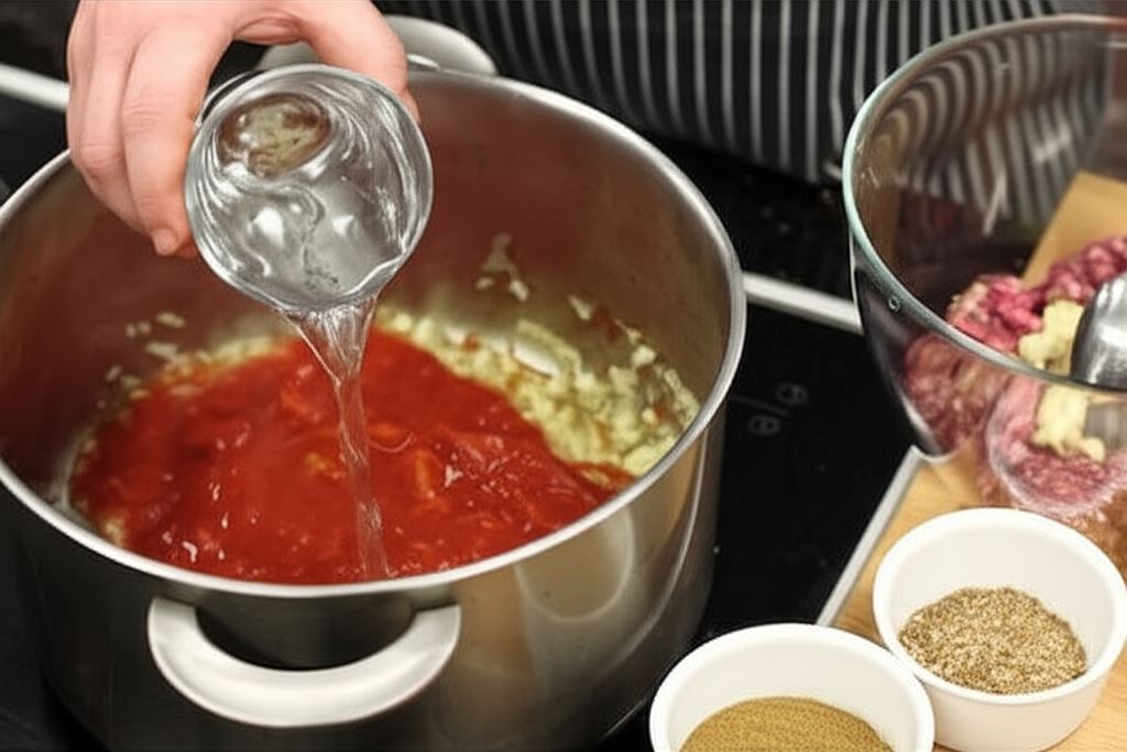 Cebulę i czosnek zrumień w garnku na rozgrzanej oliwie. Dodaj połowę cebuli i czosnku do mięsa mielonego, a pozostałą część zalej pomidorami z puszki, wlej szklankę wody, wsyp jedną rozdrobnioną papryczkę chipotle z niewielką ilością sosu, dodaj połowę mielonej kolendry i kminu. Gotuj sos powoli pod przykryciem. Na zakończenie dopraw szczyptą soli i cukru jeśli uznasz to za potrzebne.