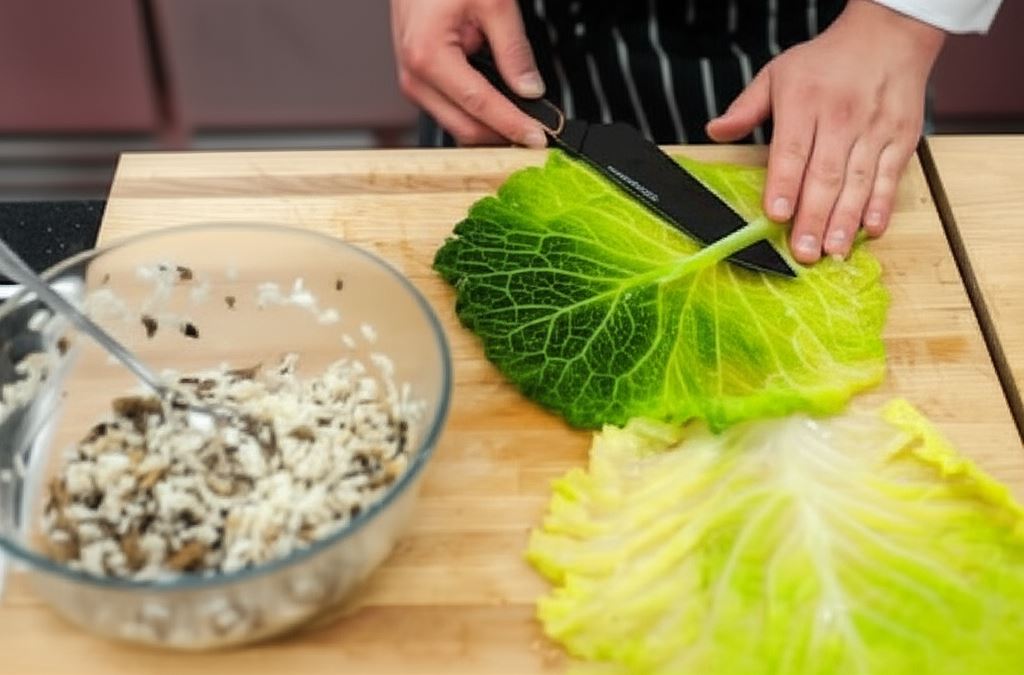 Sekret udanych gołąbków tkwi w odpowiednim przygotowaniu kapusty – liście należy delikatnie oddzielać po ugotowaniu, by zachowały swoją elastyczność. Nadzienie z pieczarek i ryżu nabiera wyjątkowego aromatu podczas duszenia w kremowym sosie śmietanowym, który przenika do wnętrza każdego gołąbka.