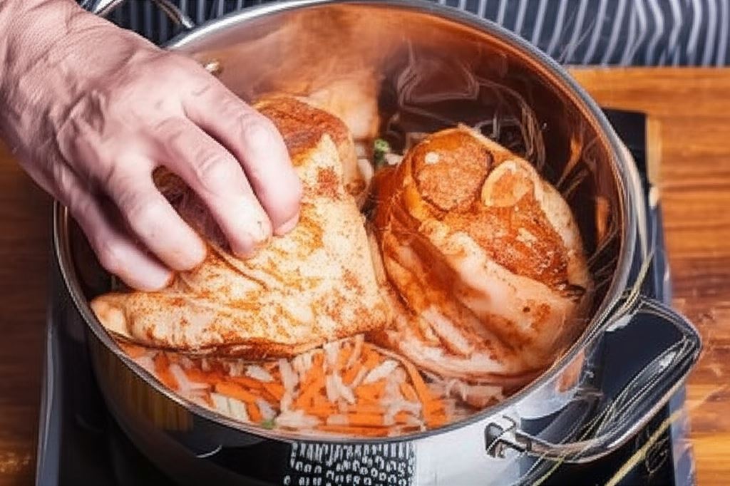 Soczysta golonka w aromatycznym sosie chrzanowym to prawdziwa uczta dla podniebienia! Ta tradycyjna potrawa zyskuje wyjątkowy charakter dzięki starannie dobranym przyprawom i kremowemu sosowi, który idealnie dopełnia smak mięsa. Sekret tkwi w odpowiednim przygotowaniu – golonkę należy natrzeć przyprawą Knorr i pozostawić na noc, aby mięso nabrało głębi smakowej. Następnie gotujemy ją z warzywami i przyprawami, by na koniec zapiec do złocistej perfekcji. Aksamitny sos chrzanowy, przygotowany na bazie wywaru, śmietanki i świeżego chrzanu, dodaje potrawie charakteru i wyrazistości.