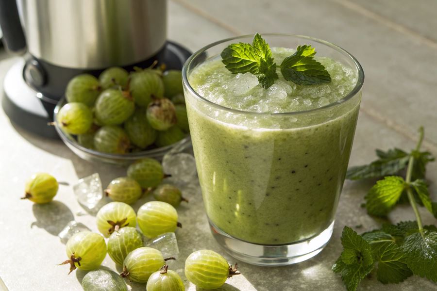 Agrest doskonale komponuje się z ziołami i warzywami, tworząc orzeźwiające napoje idealne na upalne dni.