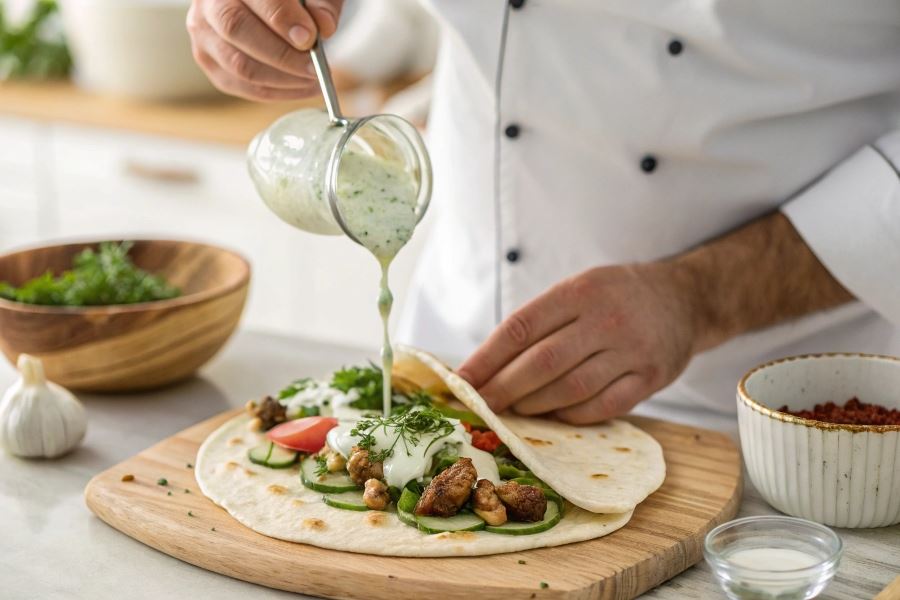 Shawarma z kurczakiem wymaga delikatniejszego sosu z przewagą ziół takich jak koper i mięta. Wegetariańska najlepiej smakuje z sosem wzbogaconym o tahini i czosnek, natomiast jagnięca potrzebuje intensywniejszej kompozycji z dodatkiem kuminu, kolendry i ostrej papryki.