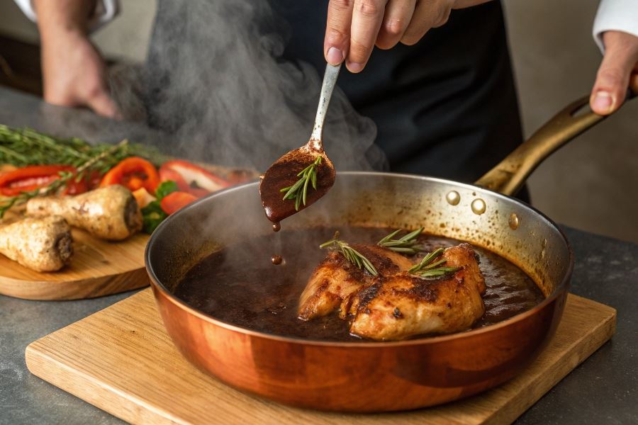 Klasyczną metodą zagęszczania sosu z grillowanego kurczaka jest redukcja – powolne odparowywanie płynu na małym ogniu, co intensyfikuje smak i naturalnie zagęszcza konsystencję. Proces ten może trwać od 15 do 30 minut, w zależności od pożądanej gęstości.