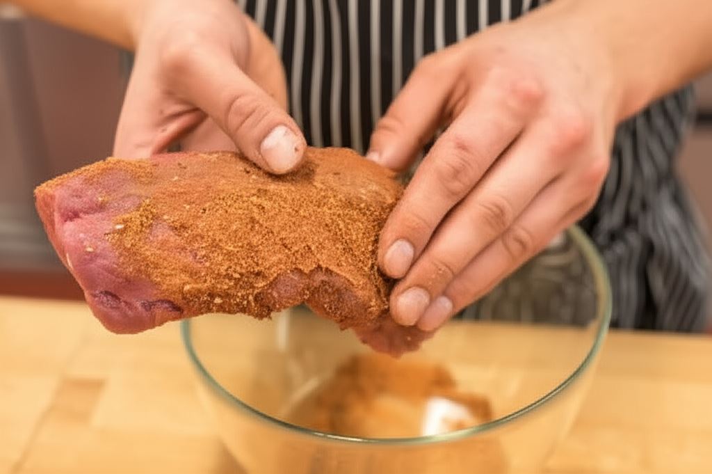 Polędwiczki posyp dokładnie Przyprawą Knorr, odłóż w chłodne miejsce na 2-3 godziny.