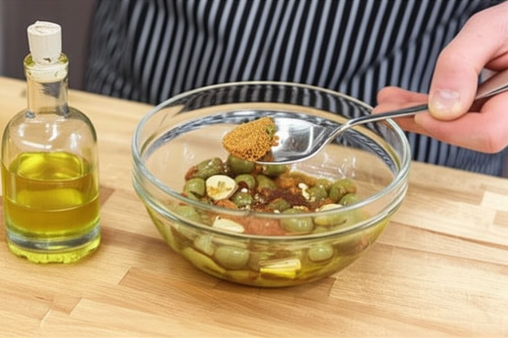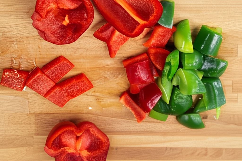 Prażenie ziaren kolendry na suchej patelni przed dodaniem do marynaty wydobywa z nich intensywniejszy aromat i głębszy smak. To mały sekret, który znacząco podnosi walory smakowe całego dania. Papryki w różnych kolorach nie tylko pięknie wyglądają, ale też różnią się smakiem – czerwona jest słodsza, a zielona lekko gorzka.