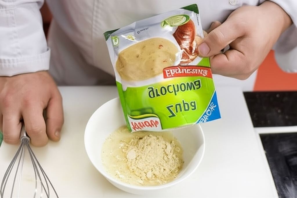 Zupę grochową Knorr rozmieszaj w małej ilości wody i dodaj do wywaru.