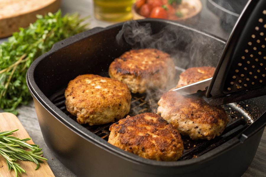 Dodatki zwiększające soczystość kotletów w airfryer są niezbędne, ponieważ gorące powietrze ma tendencję do wysuszania potraw. Namoczona w mleku bułka to sekret soczystych kotletów – należy ją dokładnie odcisnąć przed dodaniem do masy. Alternatywnie można użyć 2 łyżek jogurtu naturalnego lub 30 g startego surowego ziemniaka.