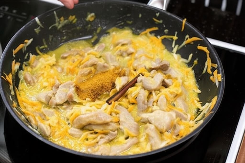 Wsyp cynamon, gałkę muszkatołową, curry i Bulion grzybowy na borowikach leśnych Knorr. Gulasz dolej jeszcze szklanką wody. Wszystko duś pod pokrywką, aż mięso będzie miękkie (ok. 30 minut)