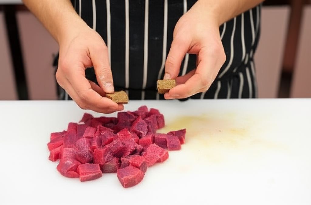 Aromatyczny gulasz wołowy z kaszą gryczaną to prawdziwa uczta dla podniebienia. Soczyste kawałki wołowiny, duszone powoli do miękkości, w towarzystwie warzyw i przypraw tworzą harmonijną kompozycję smaków. Mięso nabiera głębokiego aromatu dzięki kostce Knorr, a dodatek koncentratu pomidorowego nadaje potrawie charakterystyczny, lekko kwaskowy posmak.