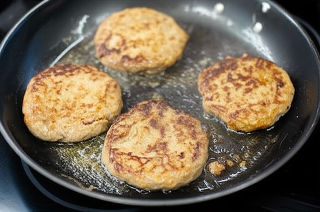 Nadzienie rozdziel na cztery porcje. Z każdej części uformuj kotleta. Mięso przysmaż na patelni lub upiecz na grillu.