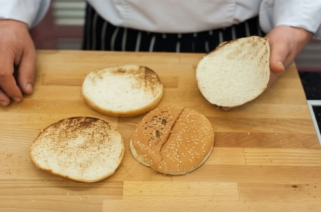 Przekrój bułki na połówki i zrumień je na patelni albo w piekarniku.