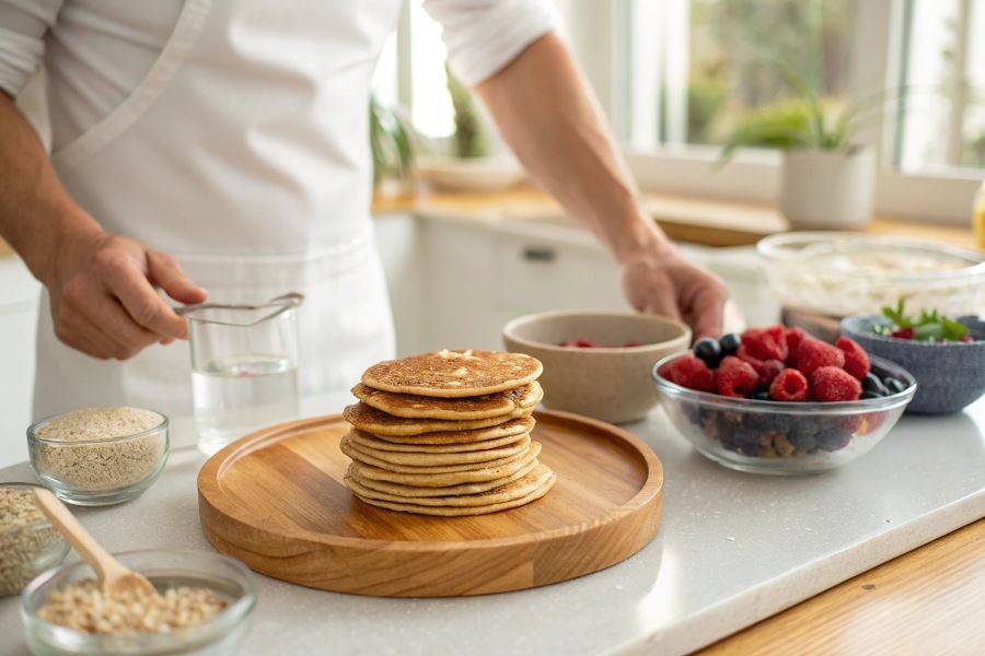 Owies zawiera również cenne beta-glukany – rozpuszczalny błonnik obniżający poziom cholesterolu we krwi i wspierający pracę układu odpornościowego. Przygotowanie naleśników na wodzie zamiast na mleku czyni je lekkostrawniejszymi i odpowiednimi dla osób z nietolerancją laktozy czy stosujących dietę wegańską.