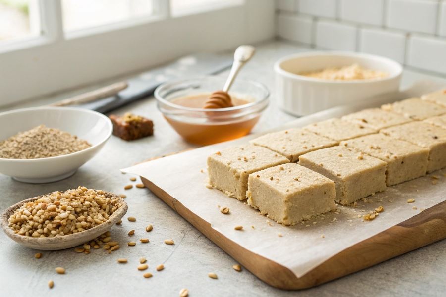Idealna chałwa słonecznikowa powinna kruszyć się w dłoniach, ale rozpływać w ustach. Jeśli masa jest zbyt sucha, dodaj łyżkę oleju lub masła. Gdy jest zbyt miękka, wydłuż czas chłodzenia lub dodaj więcej zmielonych nasion.