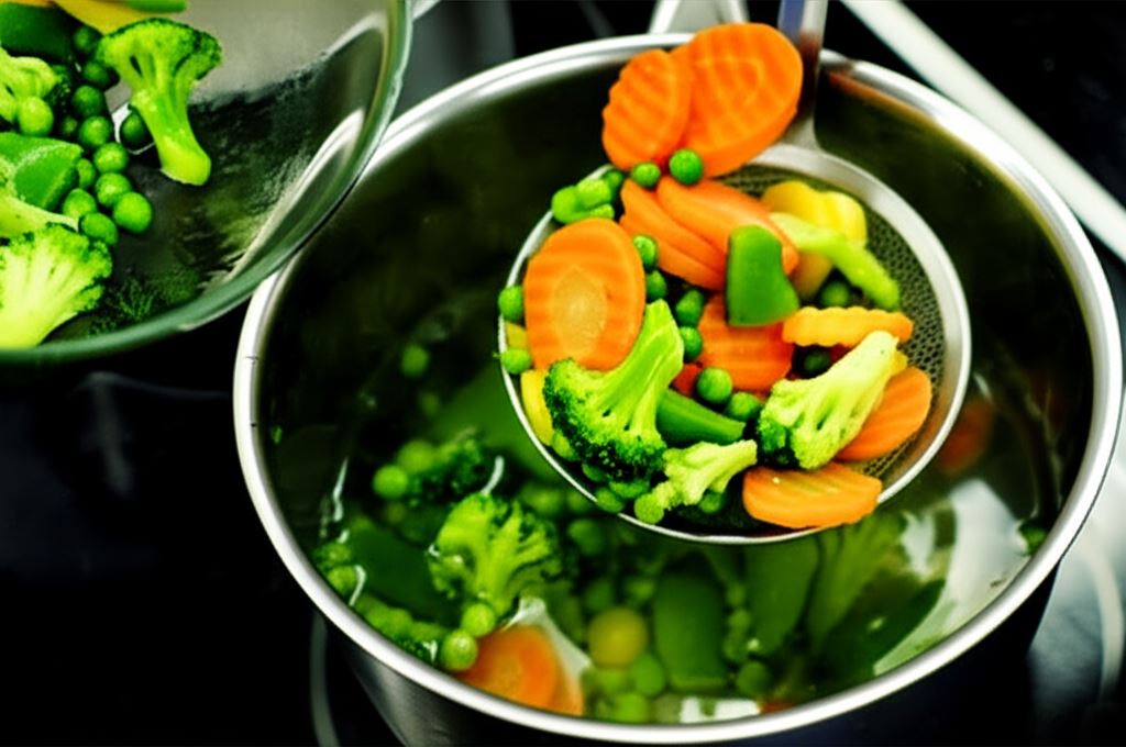 Gotuj warzywa przez minutę. Odcedź je i zatrzymaj pół szklanki wywaru.