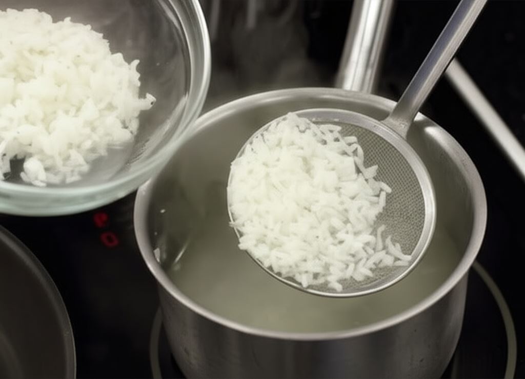 Ryż przygotuj w torebkach zgodnie z instrukcją zamieszczoną na opakowaniu. Odcedź go przez sitko.