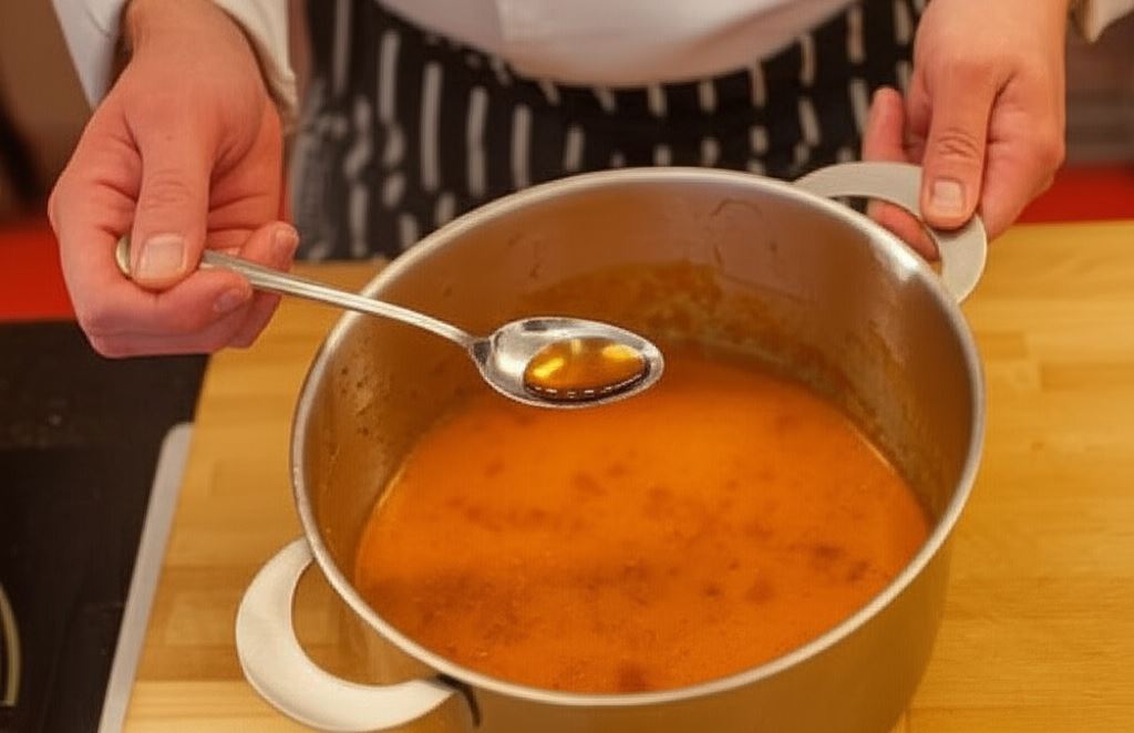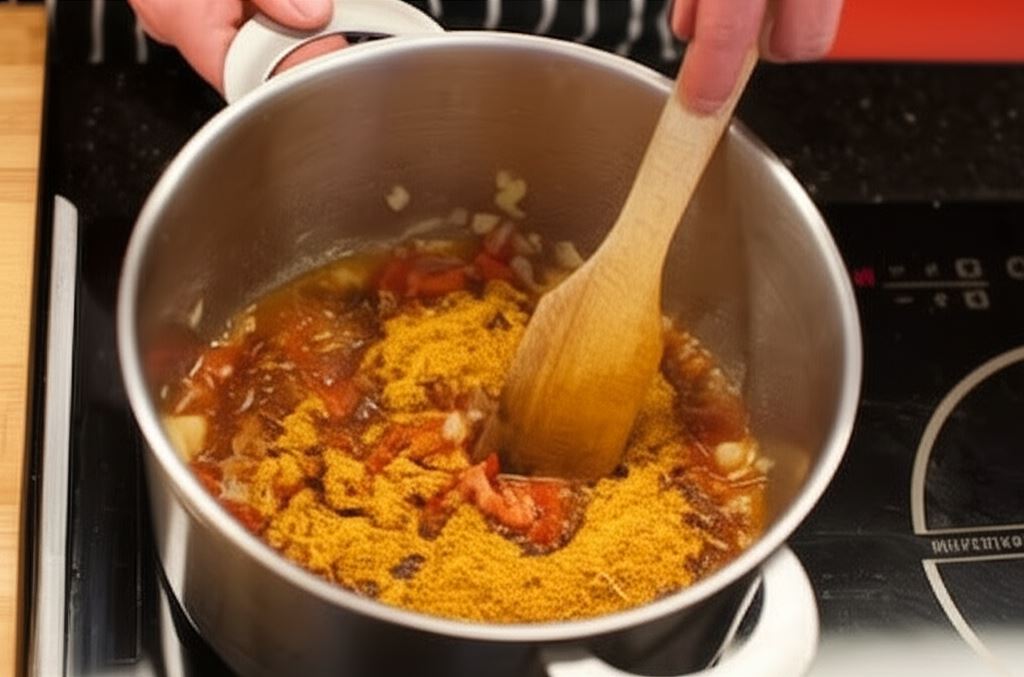 Wlej pomidory z puszki razem z sokiem do rondla, wsyp Fix Knorr i doprowadź całość do wrzenia. Potem odstaw, aby ostygło.