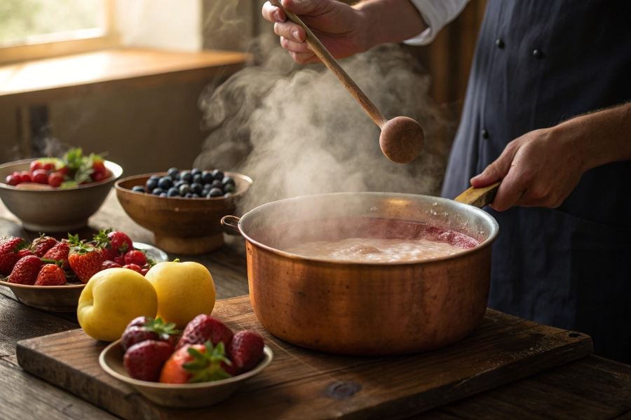 Przygotowanie klasycznego kisielu owocowego przebiega w kilku prostych krokach: