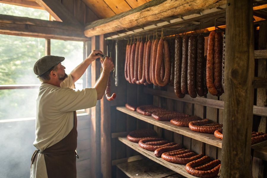 Higiena podczas produkcji jest kluczowa. Sterylizacja narzędzi i utrzymanie temperatury mięsa poniżej 10°C podczas przygotowania zapobiega namnażaniu się bakterii. Wędzenie w temperaturze 70-80°C przez minimum 4 godziny nie tylko nadaje smak, ale również eliminuje większość drobnoustrojów. Badania z 2024 roku wykazały, że kiełbasy wędzone tradycyjnie drewnem bukowym lub olchowym wykazują o 40% dłuższą trwałość niż te wędzone preparatami dymnymi.