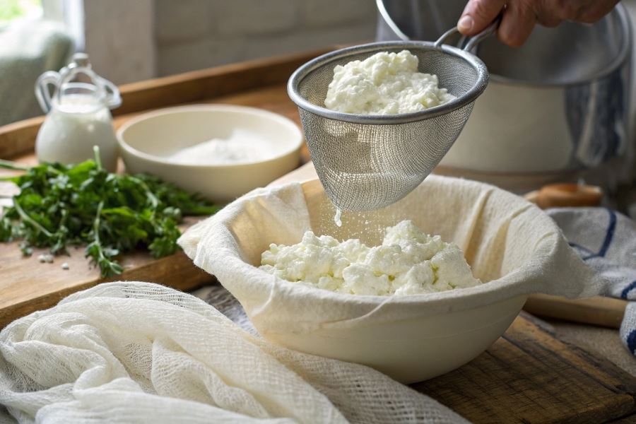 - Chusta serowarską lub gaza – do odcedzania i formowania sera