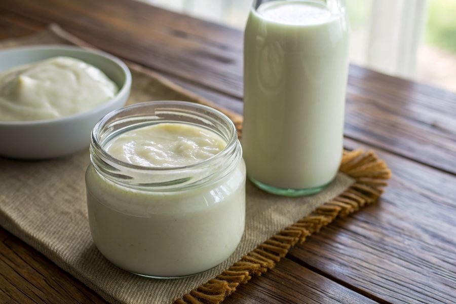 Do schłodzonego mleka dodaj kultury bakterii jogurtowych. Możesz użyć: