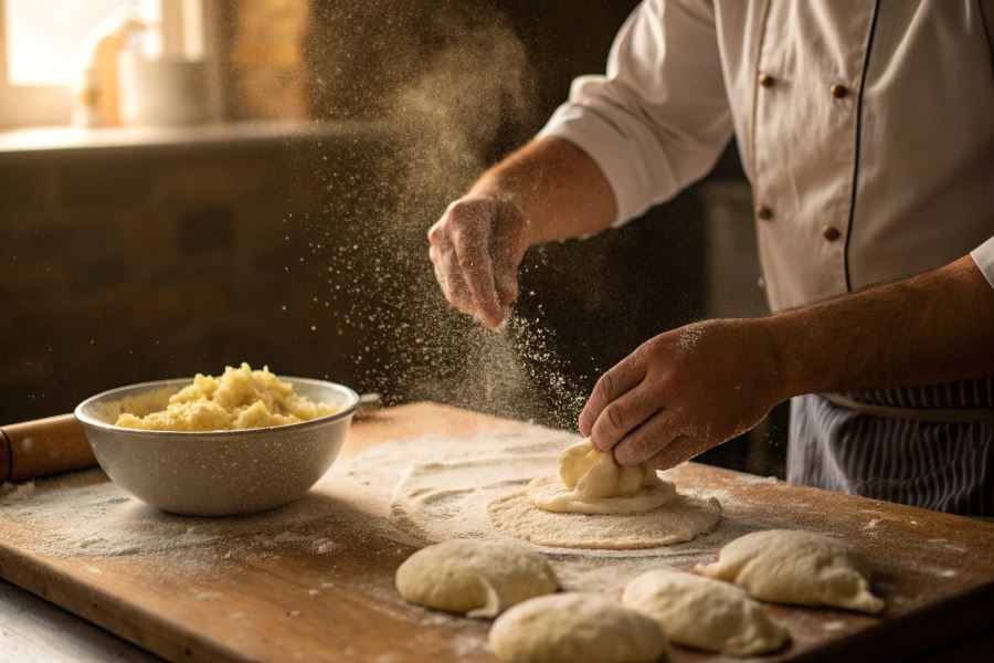 Ciasto na wrzątku to sekret idealnych pierogów z ziemniakami – elastycznych, delikatnych, a jednocześnie wytrzymałych podczas gotowania. W PrimeCook wiemy, że właściwa technika przygotowania takiego ciasta stanowi fundament doskonałego dania.