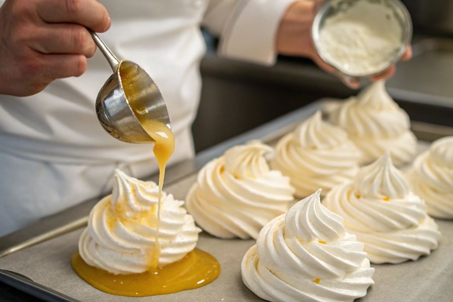 Proces przygotowania bezy włoskiej wymaga precyzyjnego timingu i kontroli temperatury: