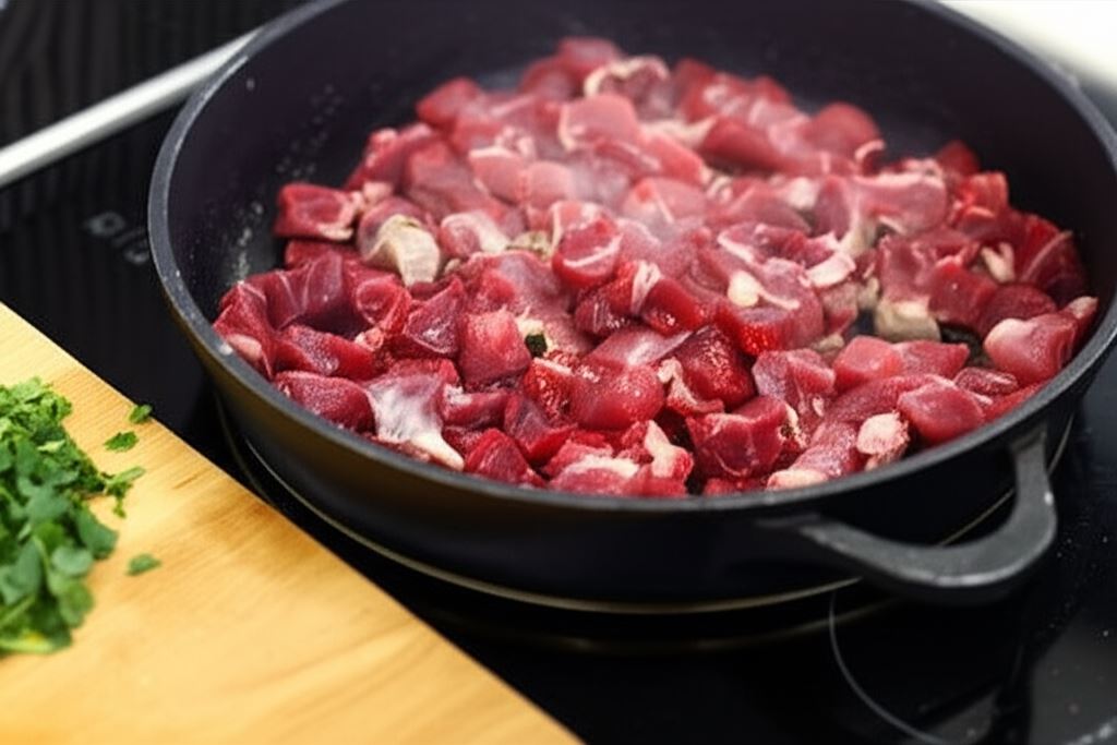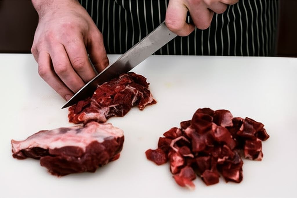 Mięso jagnięce pokrój w kostkę.