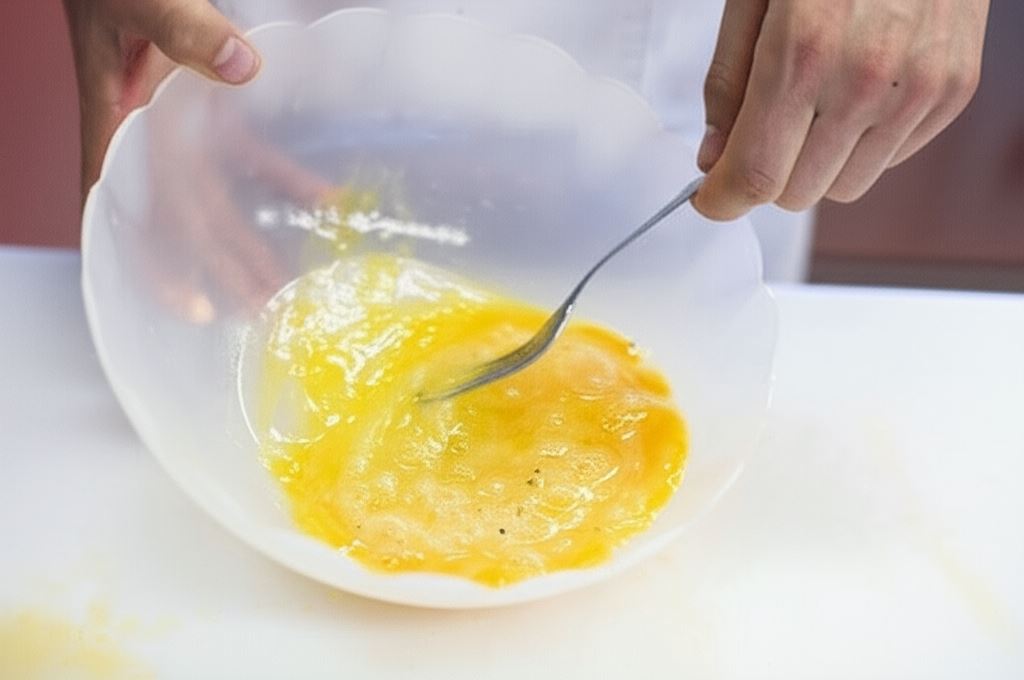 Sekret idealnej jajecznicy tkwi w detalach – masło nie może się przypalić, a jajka powinny być mieszane z wyczuciem. Obieranie pomidora ze skórki po sparzeniu wrzątkiem to mały trik, który znacząco podnosi jakość potrawy. Dodanie Mini kostki Knorr o smaku smażonej cebuli wzbogaca aromat i smak całego dania.