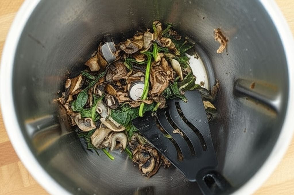 Potem wsyp szpinak, delikatnie zamieszaj i przenieś wszystko do pojemnika blendera.